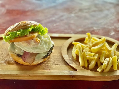 Hamburguesa Artesanal con Papas Fritas y dos Empanadas
